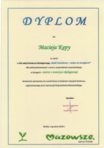 W grudniu nastąpiło rozstrzygnięcie konkursu. W kategorii „wiersz”wyróżnienie otrzymał uczeń za utwór pt. „Smog”