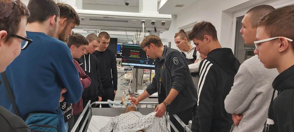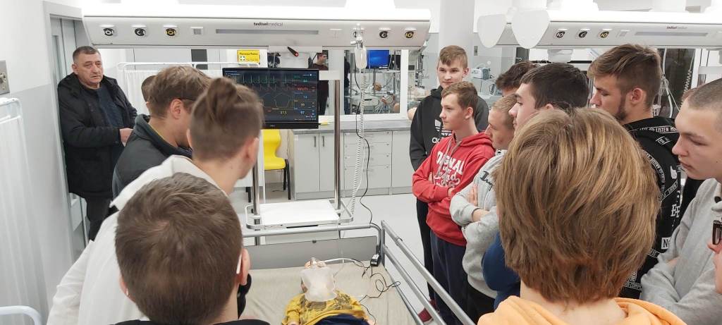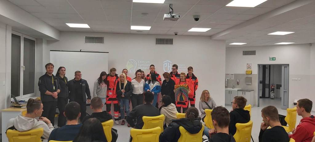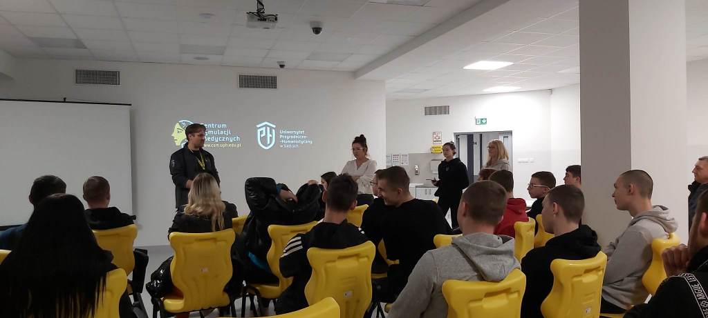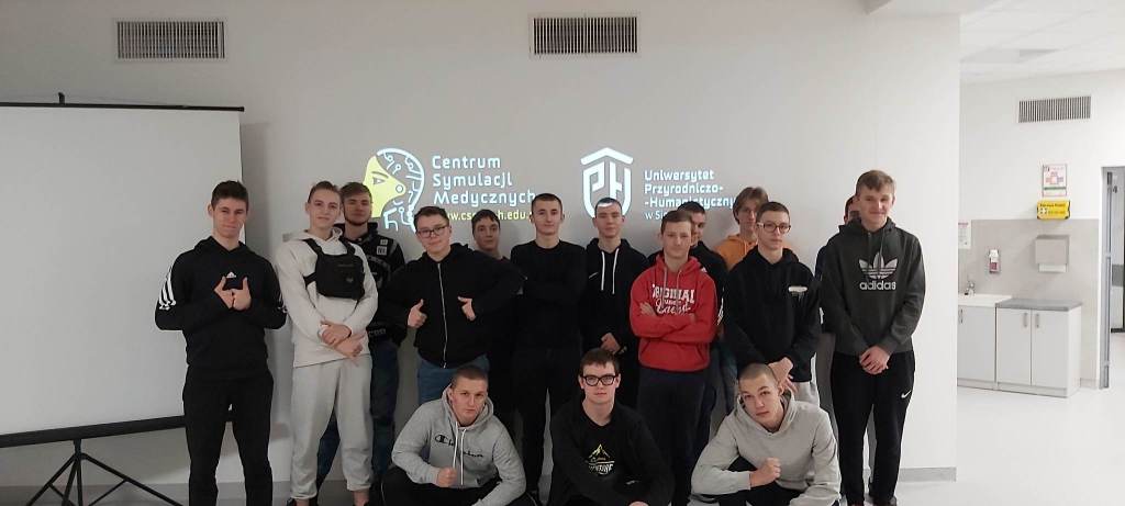 Drugim, wcale nie mniej ciekawym punktem wycieczki, było Centrum Symulacji Medycznych. Studenci Ratownictwa Medycznego z Uniwersytetu Przyrodniczo-Humanistycznego w Siedlcach zaskoczyli chłopaków ciekawym pokazem, który był połączony również z prezentacją pierwszej pomocy. Dużą wartością było to, że swoich sił mogli spróbować również nasi wychowankowie! Uważnie śledzili cały proces resuscytacji, a potem w skupieniu odtwarzali wszystkie czynności.