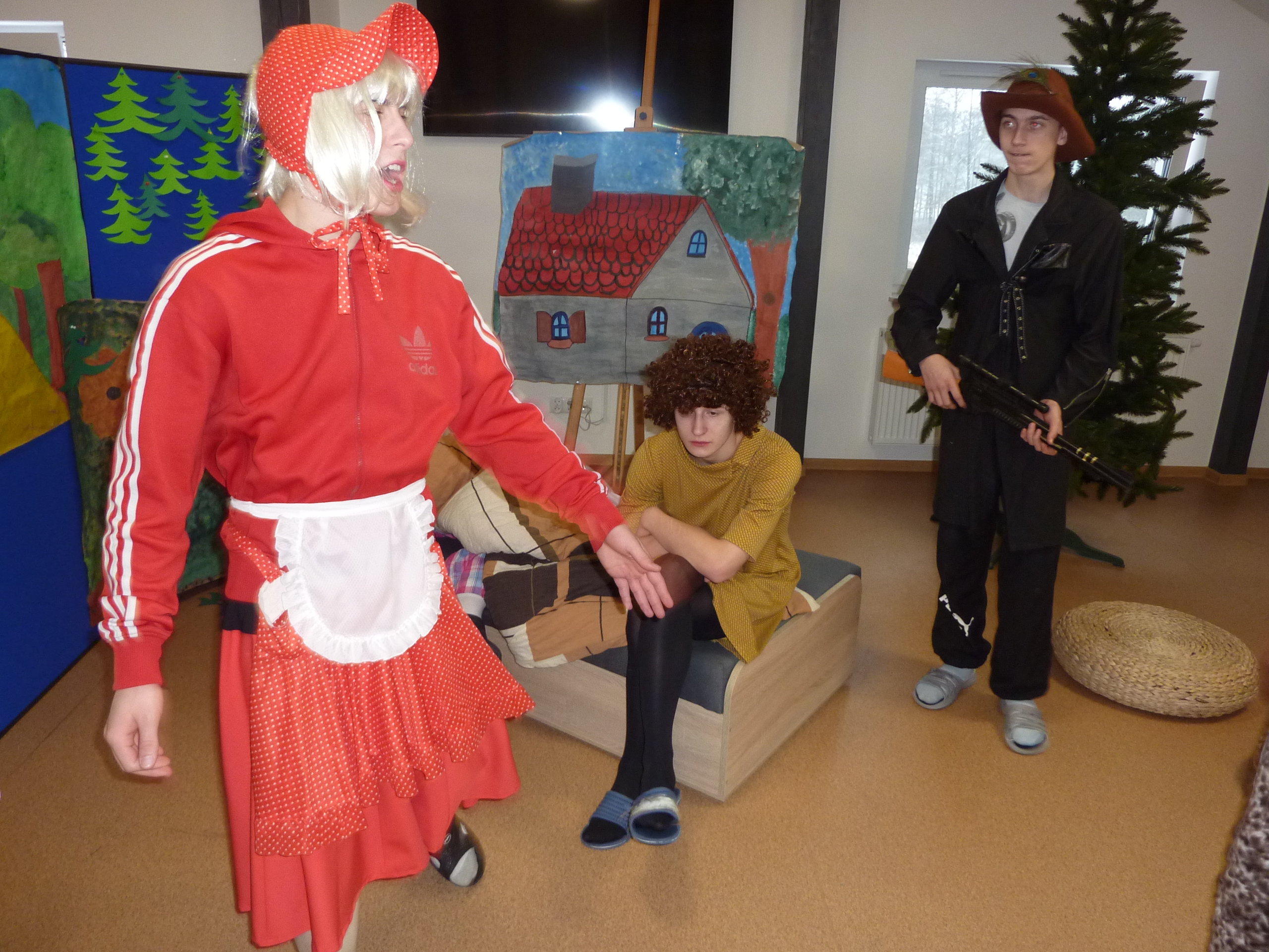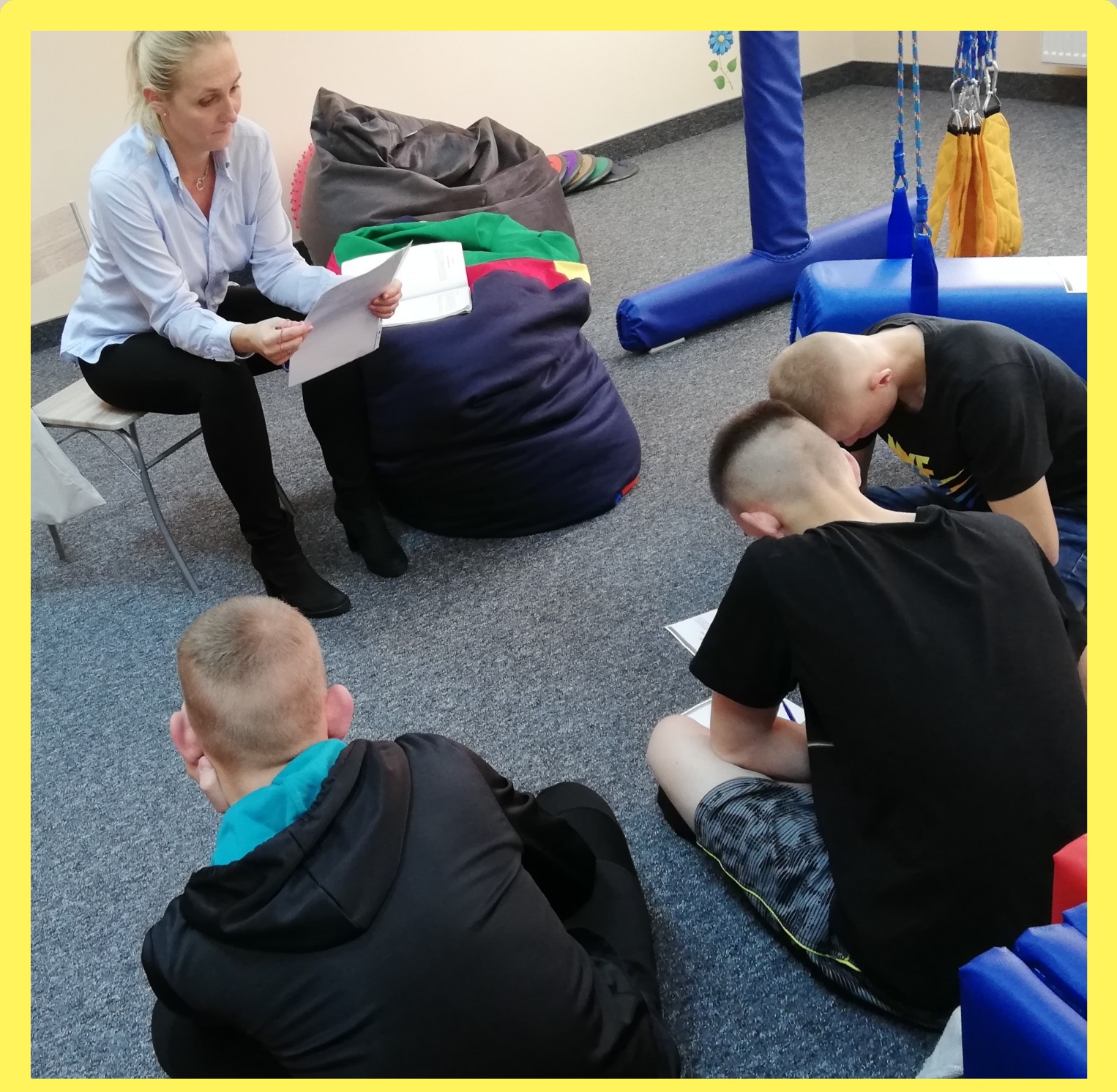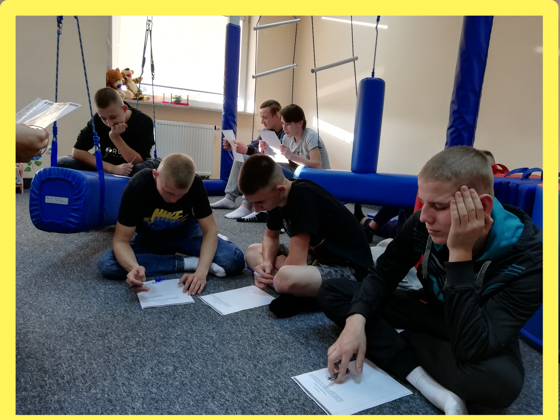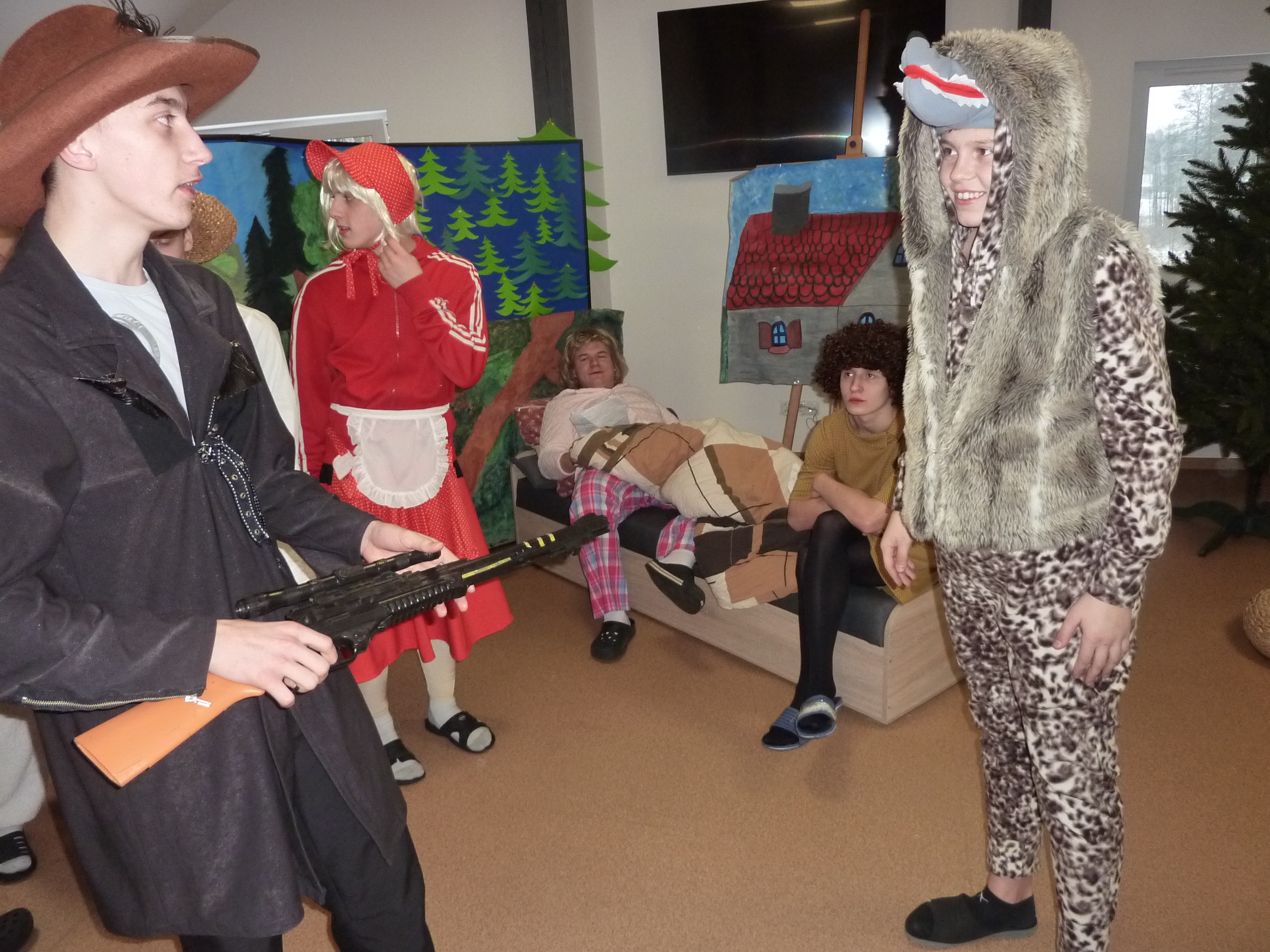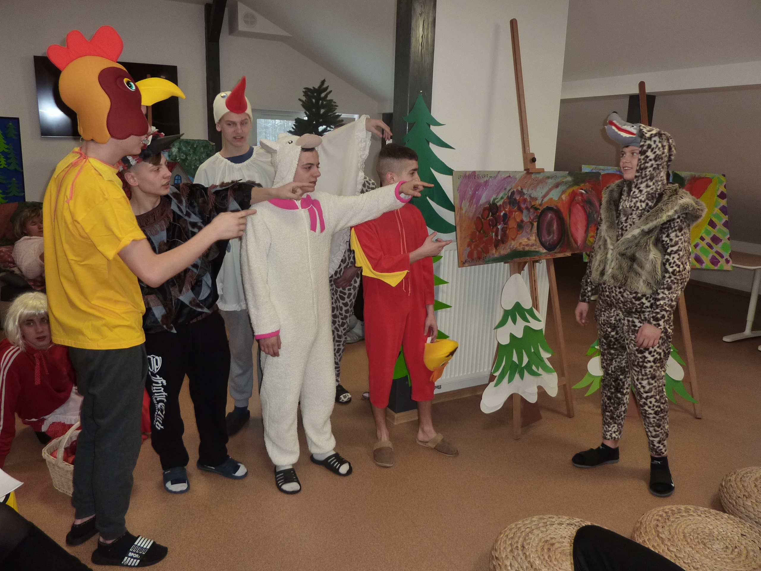 Socjoterapia– Każdy wychowanek uczestniczy w zajęciach socjoterapeutycznych, na których modelowane jest prawidłowe, akceptowane społecznie zachowanie, budowana jest adekwatna samoocena, rozwiązywane są problemy i trudności społeczne wychowanka. Jedną z form jest zabawa w teatr.