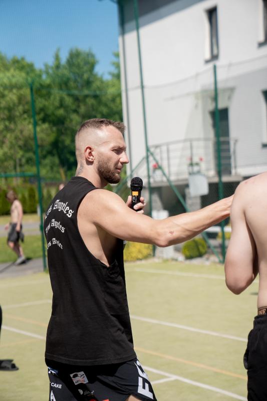 Kolejnym punktem programu był trening MMA z Krystianem Wilczakiem, w którym mogły wziąć udział wszystkie chętne osoby. Po treningu zostało trochę czasu, który wykorzystaliśmy na sparingi, rozmowę z gościem oraz krótką wspólną grę w koszykówkę.