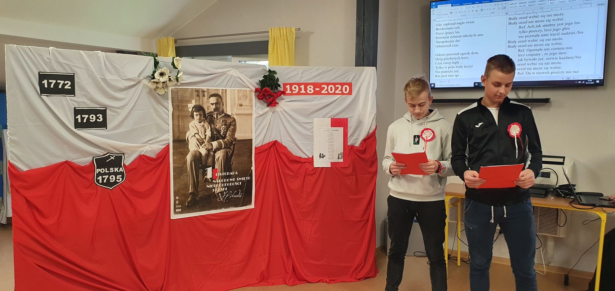 Z okazji 102. rocznicy odzyskania przez Polskę niepodległości włączyliśmy się w akcję „Szkoła do Hymnu” i dumnie odśpiewaliśmy „Mazurka Dąbrowskiego”. Dar wolności uczciliśmy także krótkim apelem i wspólnym śpiewem pieśni patriotycznych. Następnie wzięliśmy udział w szkolnym konkursie pt. „Patriotyzm z pokolenia na pokolenie”. Cztery drużyny zaciekle rywalizowały o laur zwycięstwa. Pierwsze miejsce zdobyli: B. Banasiak, A. Grześ, K. Majewski, M. Bieniek, P. Goliński.